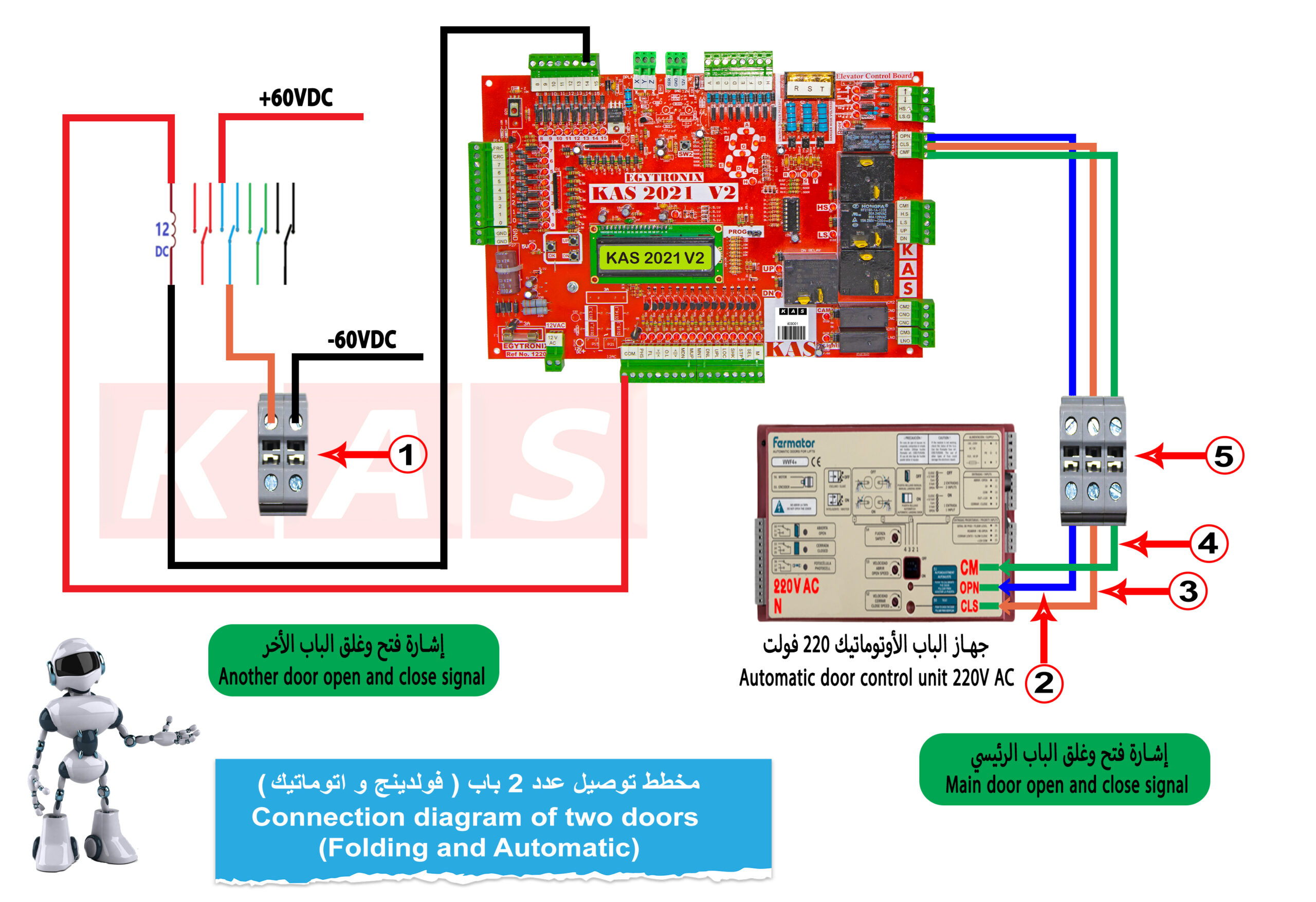- يوجد ريلاي منفصل لإشارة فتح وإشارة غلق الباب الأتوماتيك.
