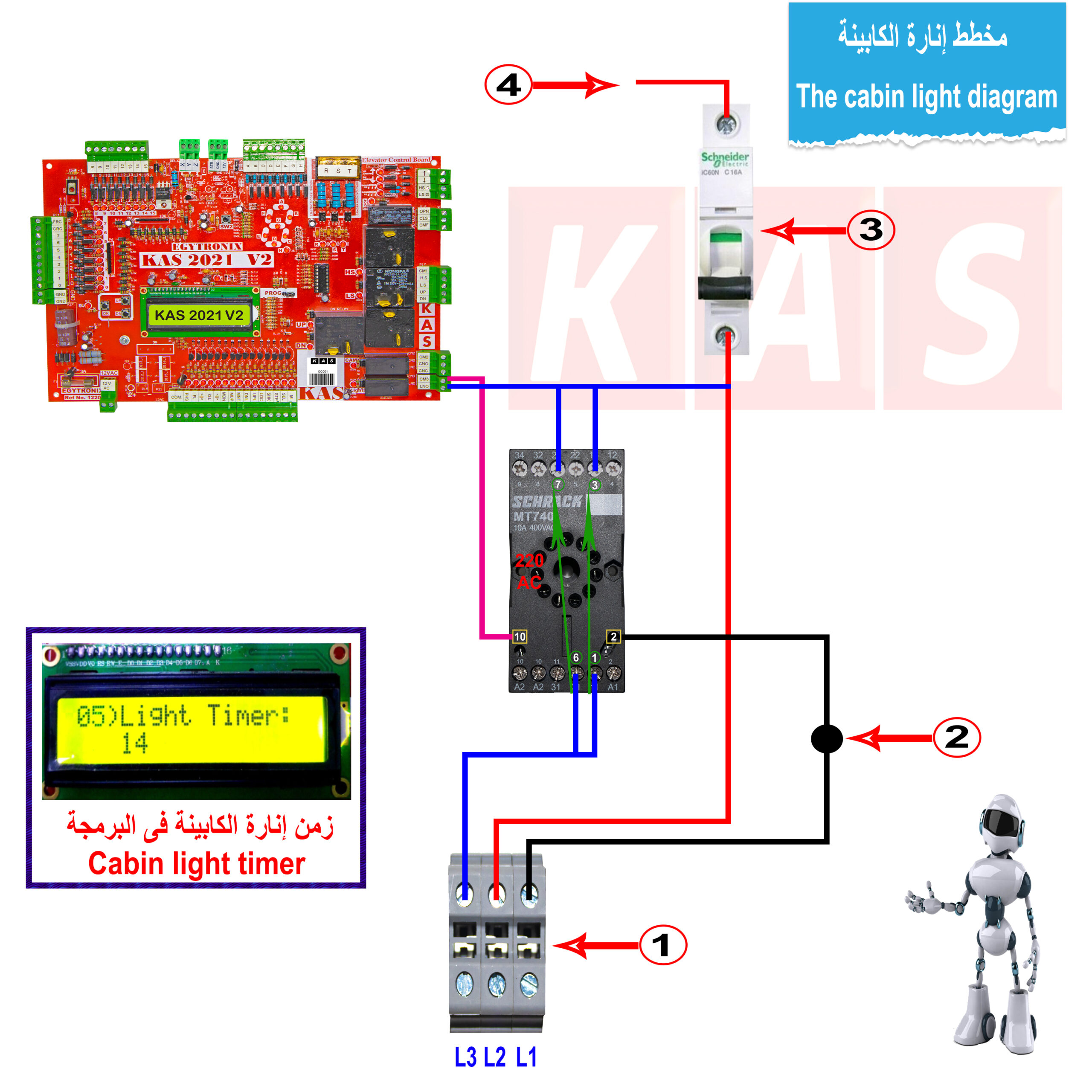- جميع الأعطال والتايمرات تؤدي إلى توقف المصعد على أقرب دور.
